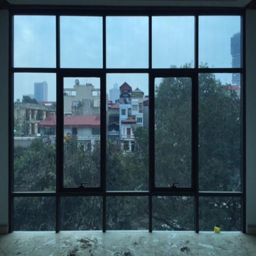 + Vách mặt dựng nhôm Xingfa hệ 65 có thanh định vị giữ vị trí góc mở hất tối đa 90 độ tránh được nguy cơ gió đập.